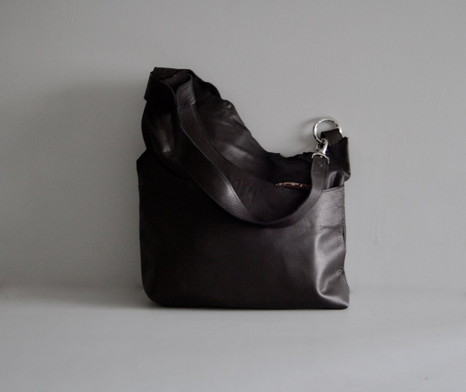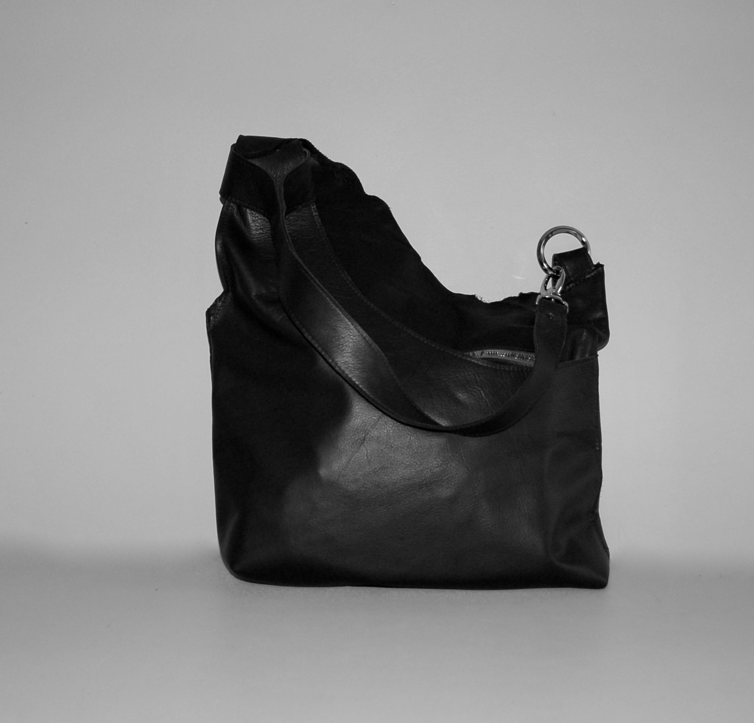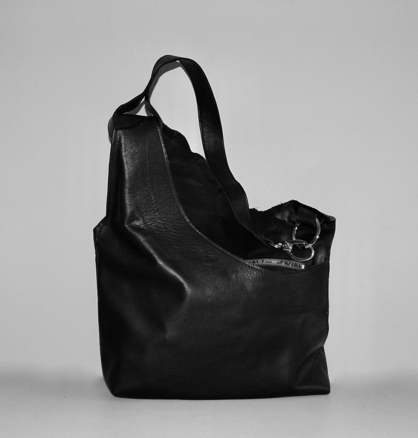 An incredibly soft bag made of the softest italian leather. The bag has an overlap of the leather that makes 2 pockets one is the interior pocket accessed by a custom RIRI zipper, and the other is a large front pocket. It's a beautiful light weight leather bag.