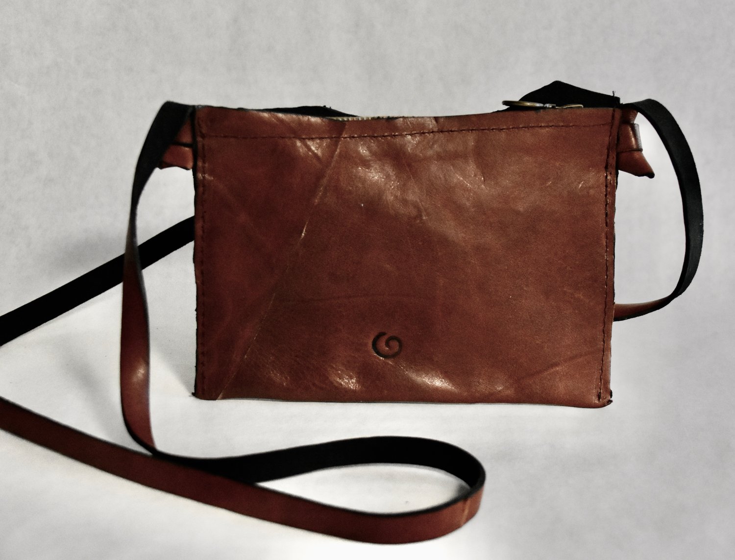 Pouches are small little bags that can hold small personals like phones, and cc, and maybe some make up. Some can be worn cross body, some can be carried with a wristlet. Most are lined with suede. Each one is unique and one of a kind and inspired by the leather itself. They are made with the same premium hides that wear well and look great!