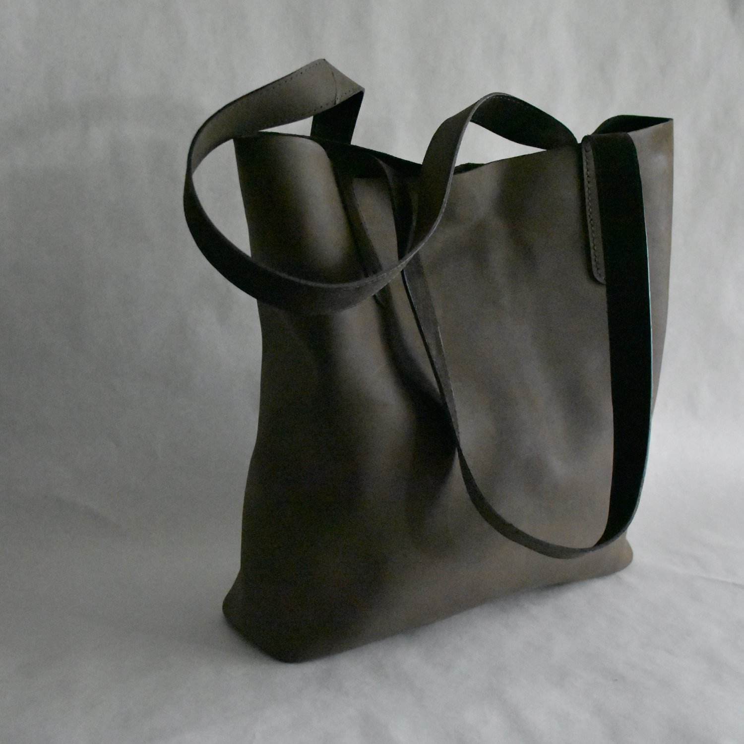 The stylish Neue Tote (pronounced 'noya') will define your individuality with it's simplistic, yet functional design. The straps are nesting, as one is shorter than the other which prevents the straps from slipping off of your shoulder. They come in a variety of shapes and sizes. A magnetic snaps allow for easy access to a large. The interior has a large drop zippered pocket . Whatever your needs, the Neue Tote has it covered. All bags are serialized in order of manufacturing and made by hand with the fines parts which made in the the USA. All of the natural beauty marks remain with the bag, and are considered part of the esthetic.