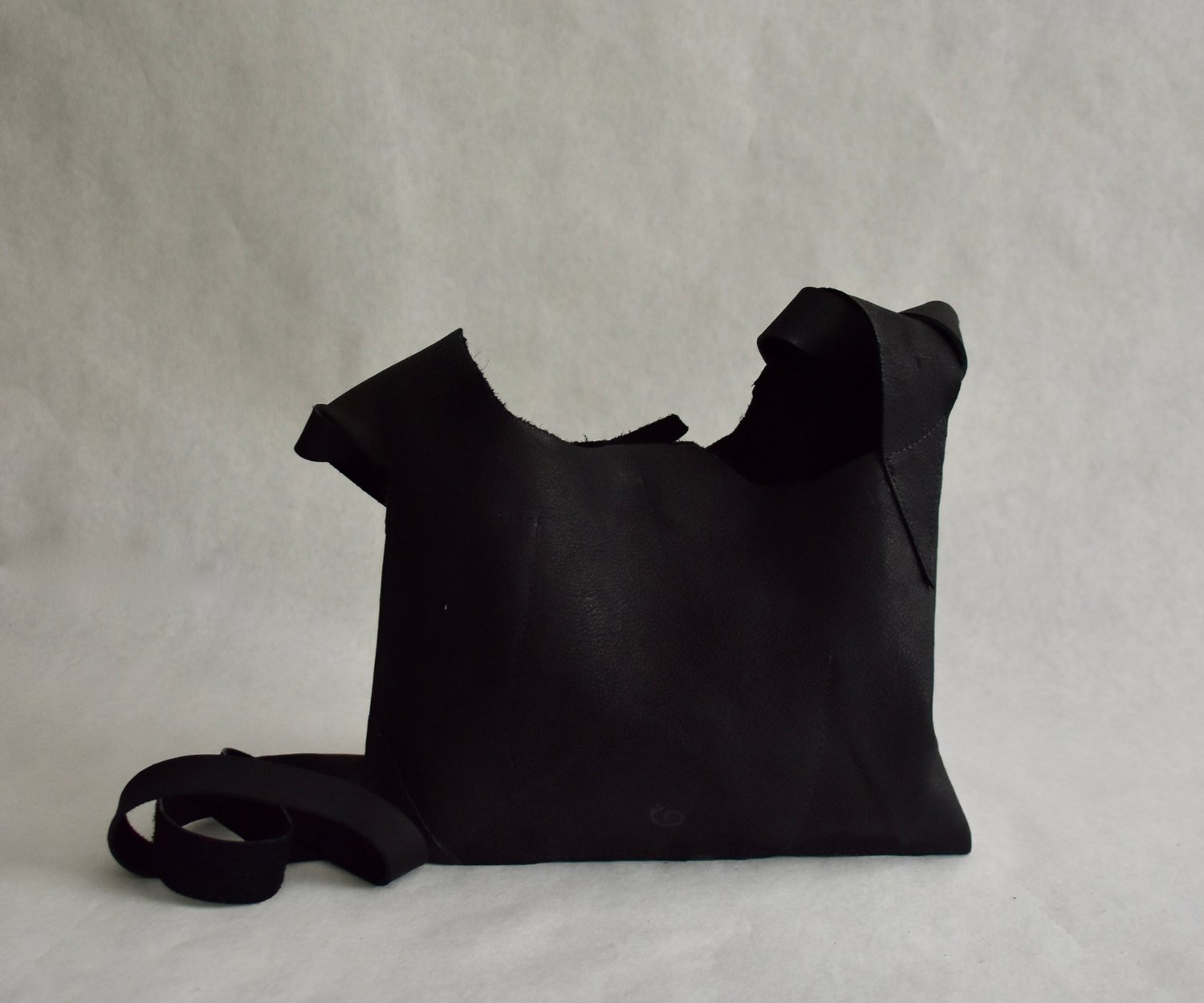 Peace Bag #391 is made of full thickness black cowhide, with all of the natural beauty marks and natural edges that define the bag. The bag is unlined, with a snap closure.