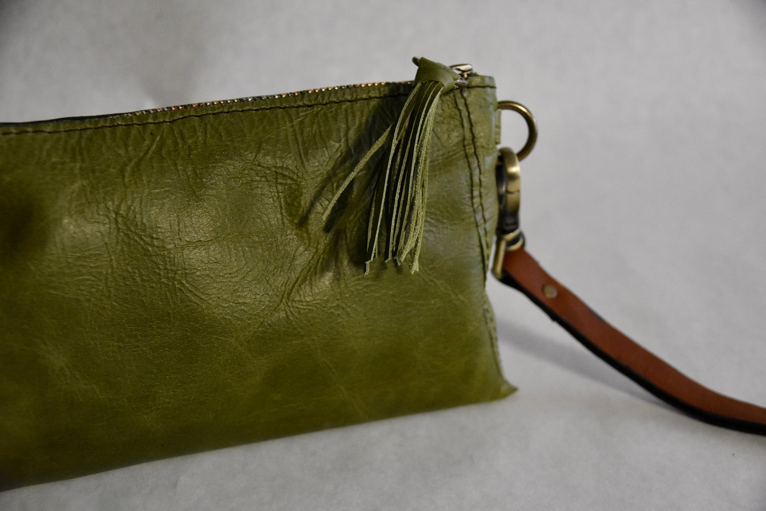 Pouches are small little bags that can hold small personals like phones, and cc, and maybe some make up. Some can be worn cross body, some can be carried with a wristlet. Most are lined with suede. Each one is unique and one of a kind and inspired by the leather itself. They are made with the same premium hides that wear well and look great!