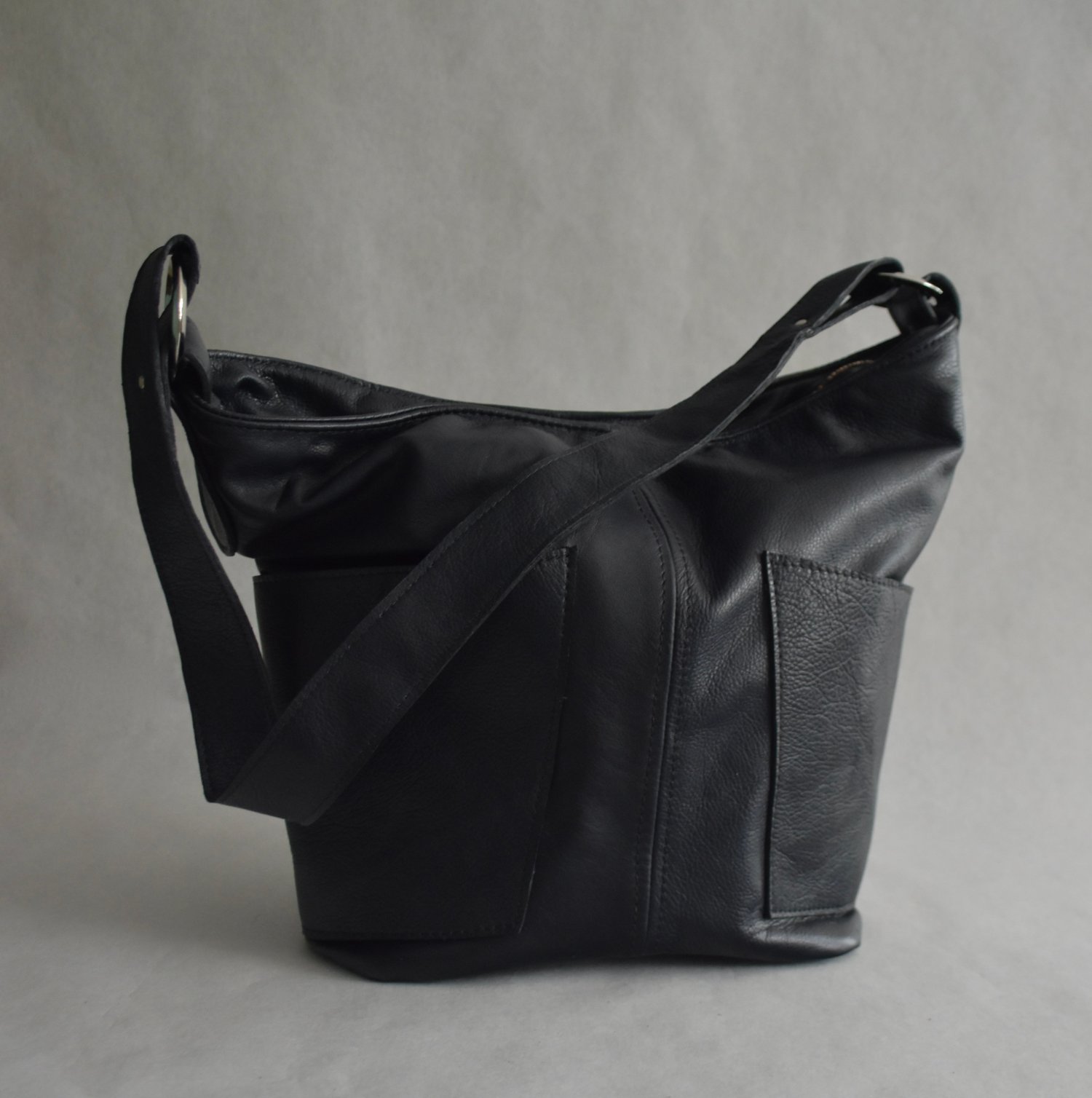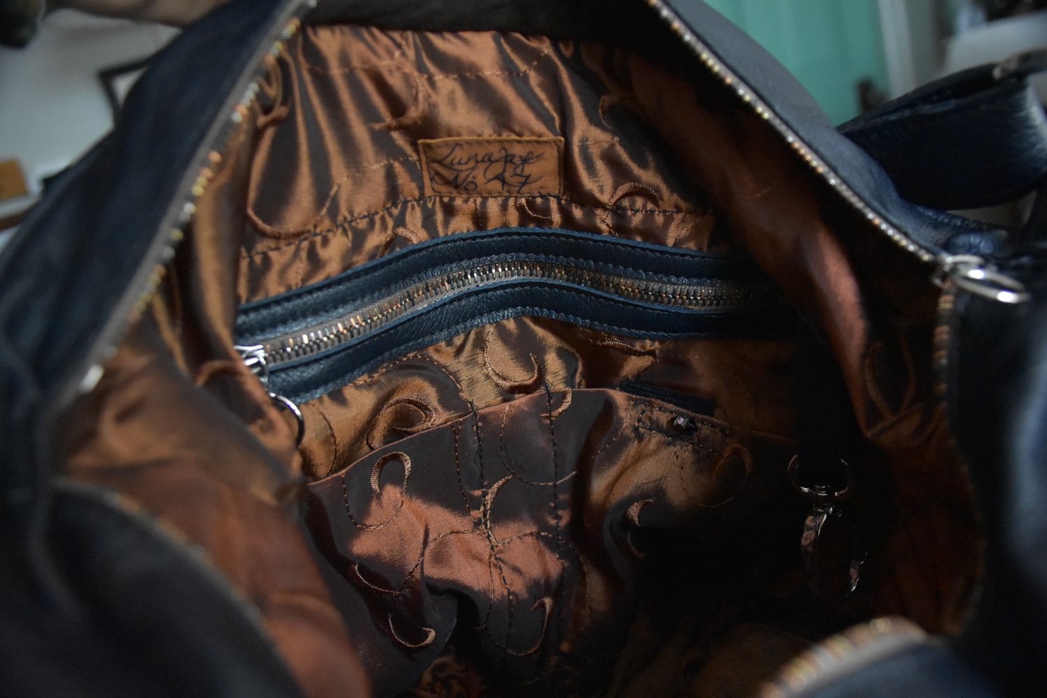The Hannah Versi Bag was designed by one of my daughters, a musician, to carry with her to her many events and concerts. When used to its full extent, the fashionable Versi Bag can accommodate spatial needs for a student or a traveler, or can be used as a hip slouchy bag or suitable for the symphony. The Versi bag has 2 wrap around outside suede lined pockets for easy access to anything you may want at your fingertips. A custom RIRI zipper and an invisible magnetic snap that secures the bag when it is open. The lining is made of a poly silk, backed with unbleached muslin and is double stitched. The Strap is made of the same or contrasting leather, using a unique infinity design that is one continuous piece of leather, resulting in a seamless strap. A zippered interior pocket, ipad pocket and other functional pockets make this bag more than ergonomic. Bags are serialized in order of manufacturing and made by hand. All parts are made in the the USA. The natural beauty marks remain with the bag, and are considered part of the esthetic.